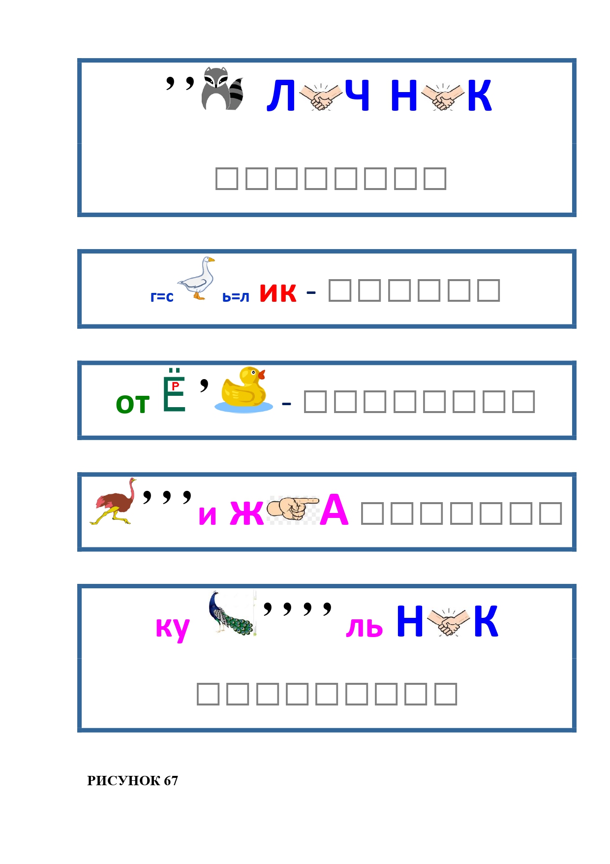 РИСУНОК 67: отличник, суслик, отвёртка, стрижка, купальник