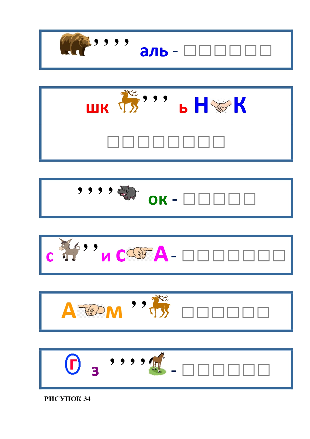 РИСУНОК 34: медаль, школьник, моток, сосиска, камень, гвоздь