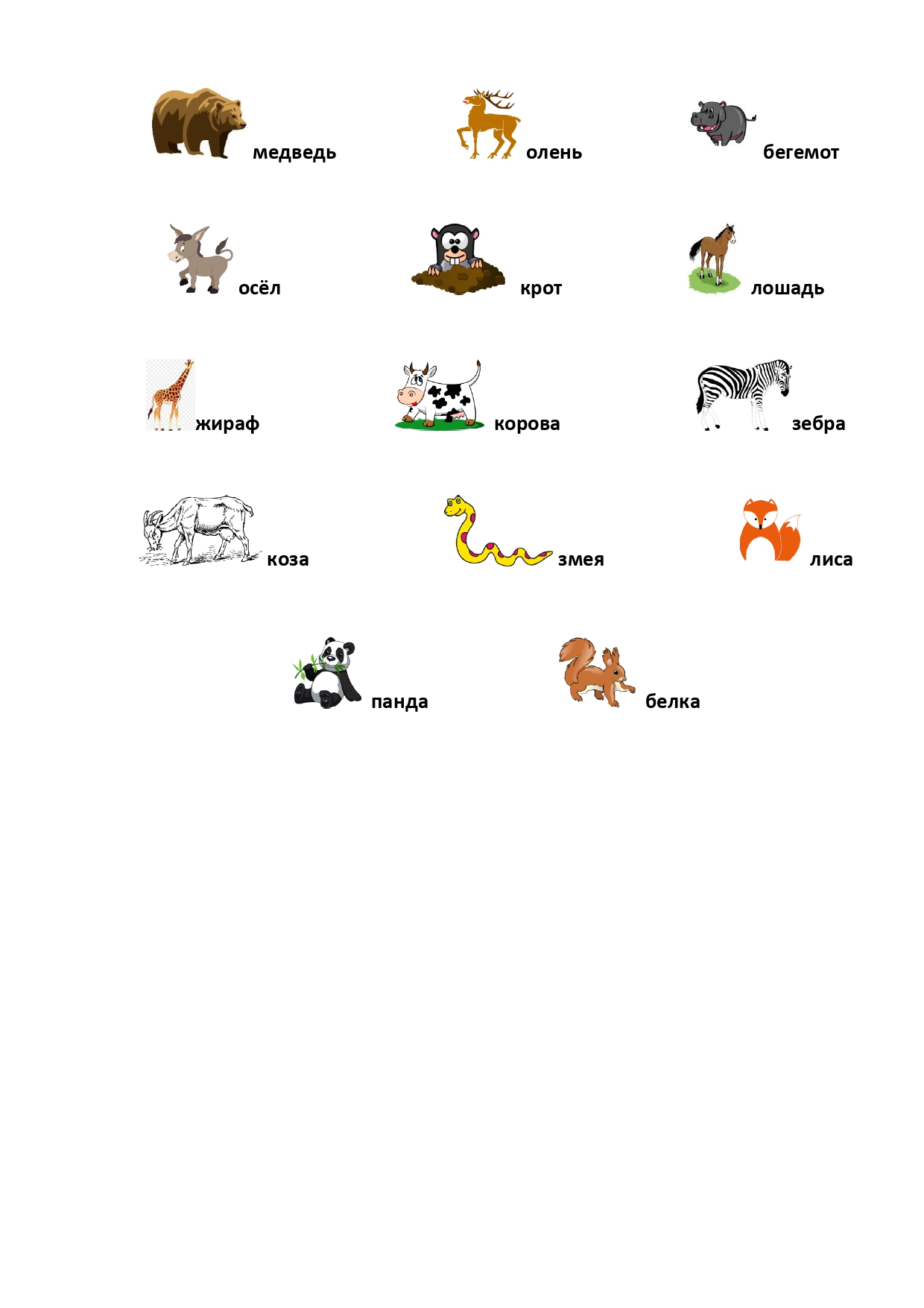 РИСУНОК 13: бурундук, волк, гадюка, дикобраз, жираф