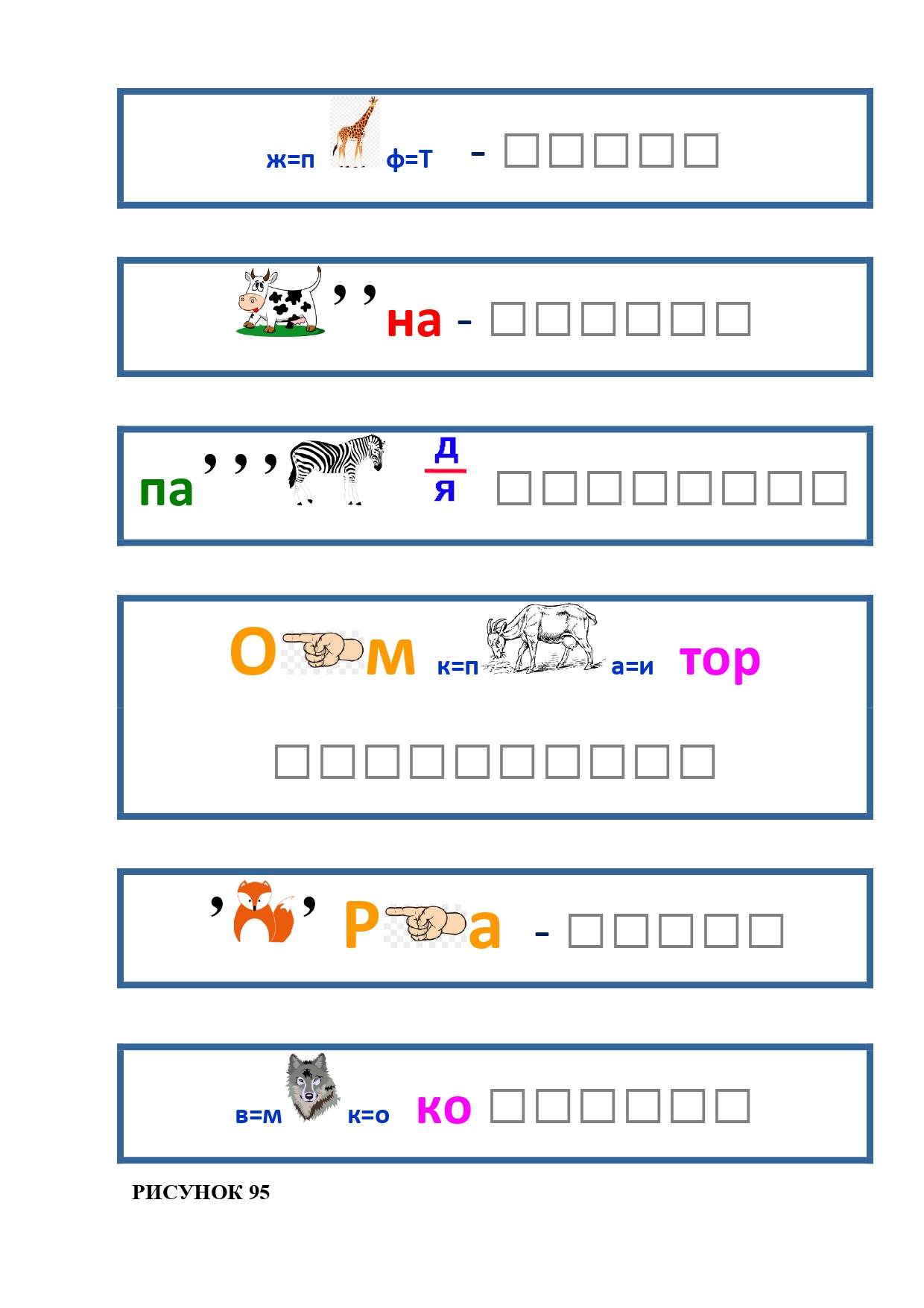 РИСУНОК 95: пират, корона, парадная, композитор, искра, молоко