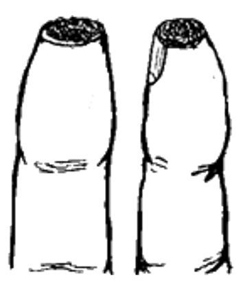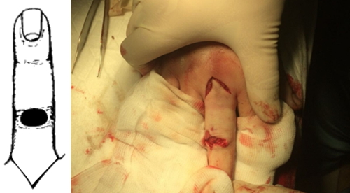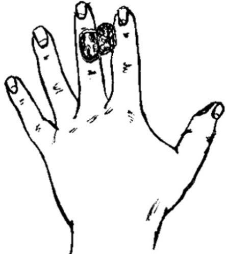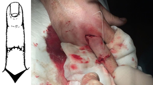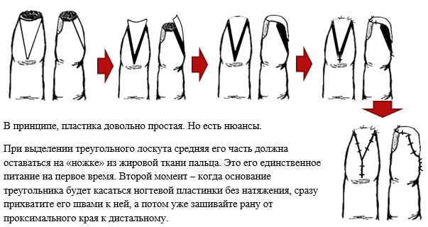 Кожная пластика торцевых дефектов пальцев кисти по Ehler
