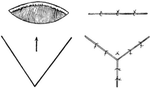 V- пластика округлых дефектов (Диффенбах, 1845 г.)