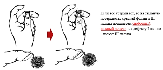 Прикладываем I палец к лоскуту III пальца. Убеждаемся, что его размера достаточно.
