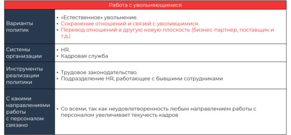 Если мы говорим буквально о процедуре увольнения, то для этого достаточно специально обученного специалиста кадрового делопроизводства. Если же мы считаем, что этот неоднозначный этап отношений между работником и работодателем можно использовать для развития организации, то мы будем переводить отношения с сотрудником в другую плоскость. В идеальном варианте вырастить из него бизнес-партнера, лояльного к «материнской» организации.