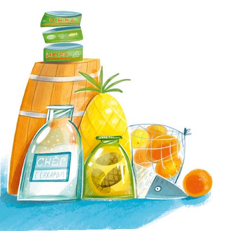 Она выложила на стол свёрток с торчащей из него головой серебристой рыбины, три банки икры, сетку с апельсинами, трёхлитровую кадушку мёда, три пузатых ананаса.