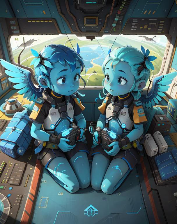 Джек кивнул, и они решили приблизиться к кораблю, чтобы рассмотреть его поближе. Подлетев и просканировав корабль, они заметили, что на борту находятся странные создания они были высокими, с ярко-синей кожей и крыльями на спине.