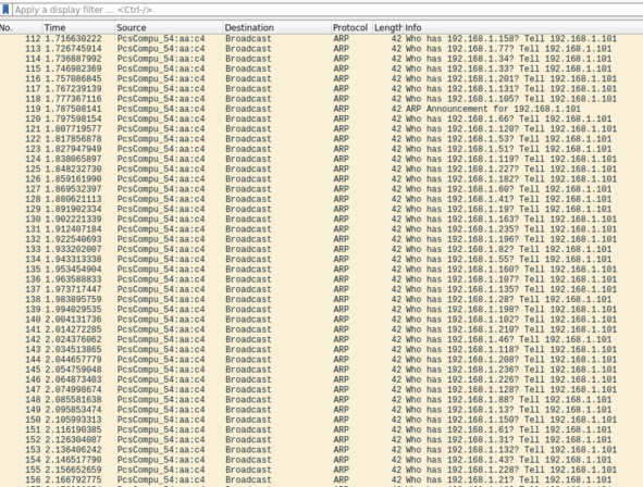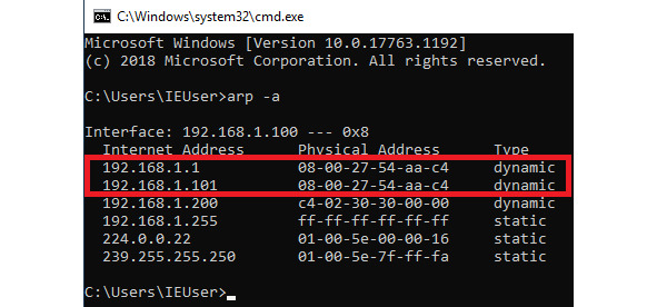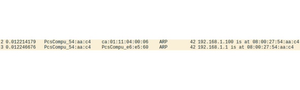 Как можно увидеть компьютер злоумышленника отсылает 2 ARP-пакета. В первом утверждается, что IP-адрес 192.168.1.100 теперь привязан к MAC-адресу злоумышленника. Второй пакет повторяет то же самое с IP-адресом 192.168.1.1.