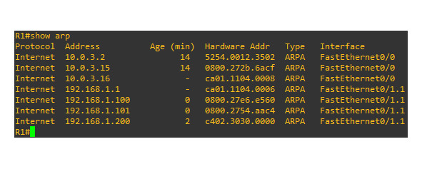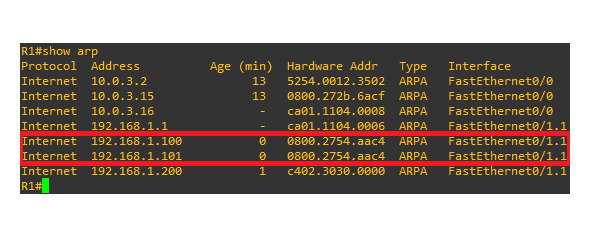 Рисунок 3.14 Отравленная ARP-таблица на R1