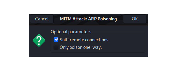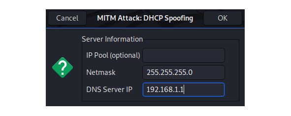 Пустой диапазон IP-адресов: Ettercap будет подделывать только ACK-сообщения. Если в это поле вписать диапазон адресов, например, 192.168.1.50192.168.1.99, то Ettercap будет отсылать сообщения OFFER.