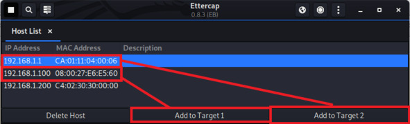 Теперь выберем 2 цели, против которых собираемся проводить атаку ARP-spoofing (рисунок 3.8)