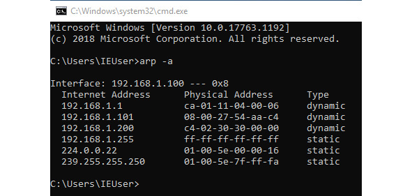 Рисунок 3.2 ARP-таблица на компьютере жертвы