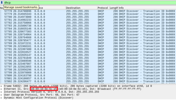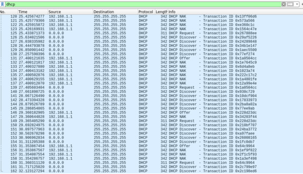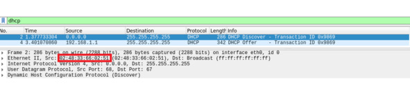 Как можно увидеть генерируется полностью вся DHCP-сессия и каждый раз DHCP-сервер выдает новый адрес устройству.