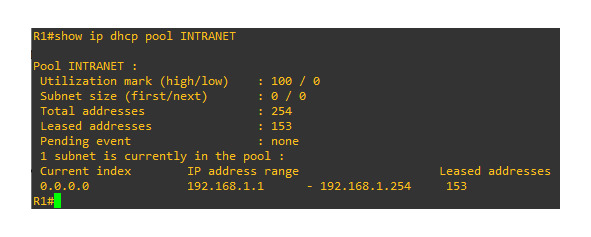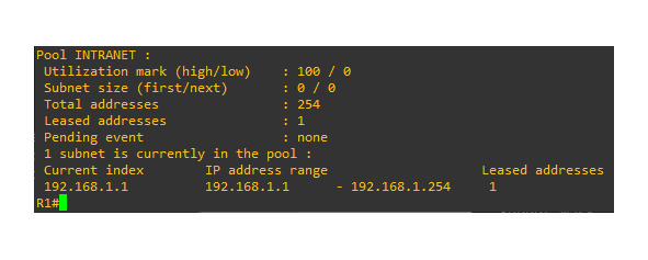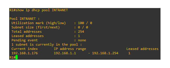 На интерфейсе PC-1 находится адрес 192.168.1.189, выданный из DHCP-пула INTRANET.