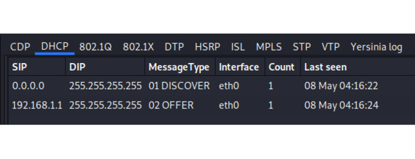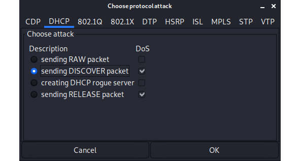 5 DHCP Starvation5.1 ОписаниеДля реализации DHCP DISCOVER flood можно воспользоваться функциональностью утилиты Yersinia. Yersinia предлагает функциональность DHCP DISCOVER flood, однако не следует путать эту атаку с фактической атакой DHCP Starvation, поскольку эффект от этой атаки является гораздо более временным (это может быть или не быть преимуществом, в зависимости от того, что вы пытаетесь достичь).