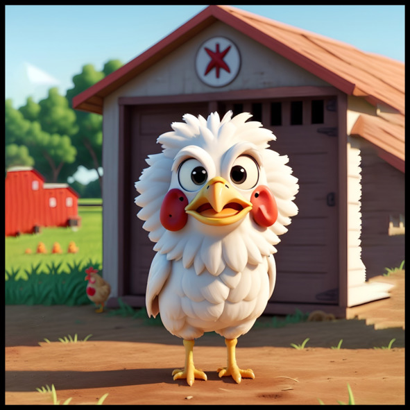 In the peaceful countryside, nestled among rolling hills and colorful meadows, lives Ingrid, the cheeky chicken with a mischievous spirit. While other chickens pecked at grains and clucked contentedly, Ingrid found endless amusement in spurring on the neighborhood dogs with her playful antics.