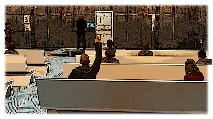 К тому времени, когда я добрался до списка обязанностей, мы уже подошли к залу для инструктажей. Свернув окно нейроинтерфейса, мешкая, я прикоснулся к считывателю, и дверь привычно распахнулась.