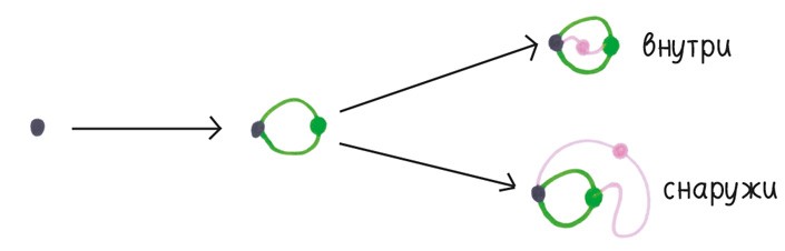 А как насчет игры, которая начинается с двух точек? У первого игрока есть лишь два варианта: соединить эти две точки или нарисовать петлю. Неважно, будет ли вторая точка «внутри» или «снаружи» петли. Топологически нет разницы.