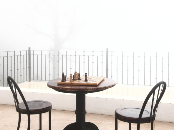 Такое чувство, что кроме нас в отеле никого нет. Мы обедаем в пустом ресторане, бродим по дорожкам мимо влажных кустов. В воздухе прохлада, по которой мы уже успели соскучиться. Около пустого бассейна стоит столик с шахматами. МС приходит в азарт и явно хочет у меня выиграть. Ее пешки ходят не только вперед, но и вбок, слоны иногда становятся однопольными. После удивительных ходов, не предусмотренных шахматной теорией, я получаю мат.