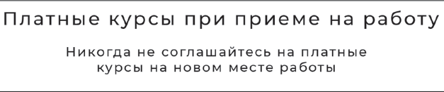 Некоторые компании предлагают вам перед началом работы купить их курс/тренинг, на протяжении которого вас будут обучать. Хорошо, если это будет стоить 500 рублей, еще можно на это пойти, хотя и не стоит, а ведь иногда это стоимость обучения бывает от 10 000 рублей и выше. Компании, дорожащие своей репутацией, никогда не предложат вам купить за свой счет стажировку, курсы по повышению квалификации, тренинги и так далее. В связи с чем стоит иметь в виду, что, если при первой встрече из вас сразу пытаются «выкачивать» деньги бегите из такой компании как можно быстрее. В такой компании вы будете постоянно должны и денег точно не заработаете.