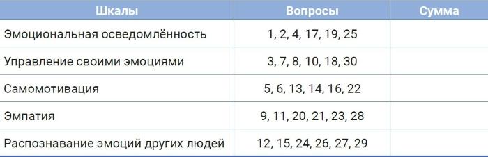 Вы также можете сложить получившиеся суммы, чтобы посмотреть общий уровень эмоционального интеллекта: