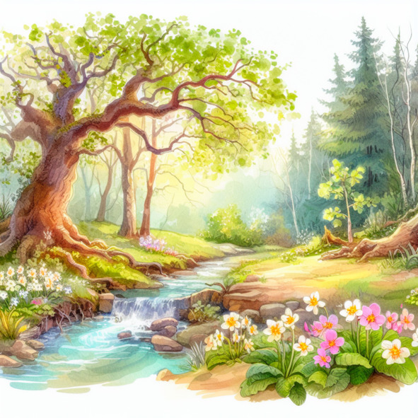 С приходом весны в лесу начал дуть особенный ветер, он принес аромат свежести и новизны. Теплые лучи солнца ласково согревали землю. Цветы раскрывали свои яркие лепестки и наполняли лес красотой. Птицы слагали свои торжественные гимны. Лес оживал, пробуждаясь от долгого зимнего сна, чувствуя прилив новых сил и надежд на предстоящий сезон.