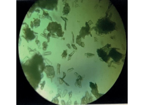 терглангандаги микроскопик кўриниши. (100 марта катталаштирилган).
