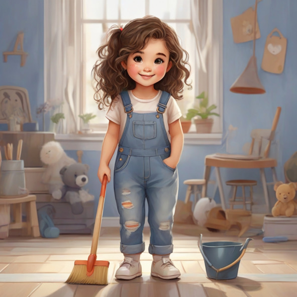 Every day, after breakfast, Lily would grab a small broom and dustpan. With her little hands, she swept the floor, making sure to collect all the crumbs. She was careful not to miss a single one.