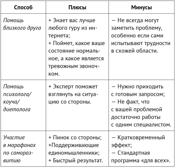 Какой выход выбрала я, прикинув плюсы и минусы каждого из способов? Я использую их все, в разных комбинациях, чтобы скорее прийти к желаемому результату. Если же вы решите работать над задачами самостоятельно, то важно четко понимать корень проблемы и обладать определенными метанавыками. Этому и будем учиться в следующих главах.