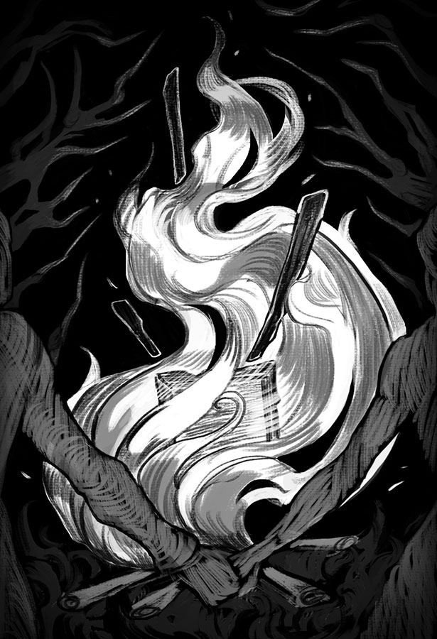 Тишина давит. Темно, хоть глаз выколи. Боль, должно быть, так велика, что я перестал различать. Дышать разучился Смотрю на клубы белесого дыма, и огонь выжигает из души клеймо чернокнижника. Пламени отдал половину себя Одно слово живо во всех языках: аллилуйя!..
