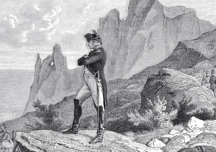 Как всегда, император вынимает из кармана маленькую подзорную трубу и осматривает окружающий мир. Плато Лонгвуд окружено горными пиками. На одном из них сейчас видны красные мундиры это один из сторожевых постов англичан. Там стоит пушка, которая бьет на закате и восходе и оповещает о прибытии кораблей.
