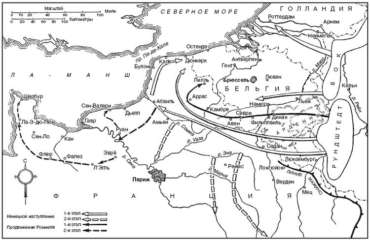 Изменили план с учетом уроков польской кампании. Там Роммель, сам ярый пехотинец, осознал возможности танковой армии. Только 15 февраля он принял командование 7-й дивизией в Годесберге на Рейне, но он изучил новую тактику и с необычайной быстротой к ней приспособился. Он и в пехоте всегда был динамичным, действуя так, как если бы она была мобильным войском, и был в восторге от куда больших возможностей мобильности, открывающихся на новом командном поприще.