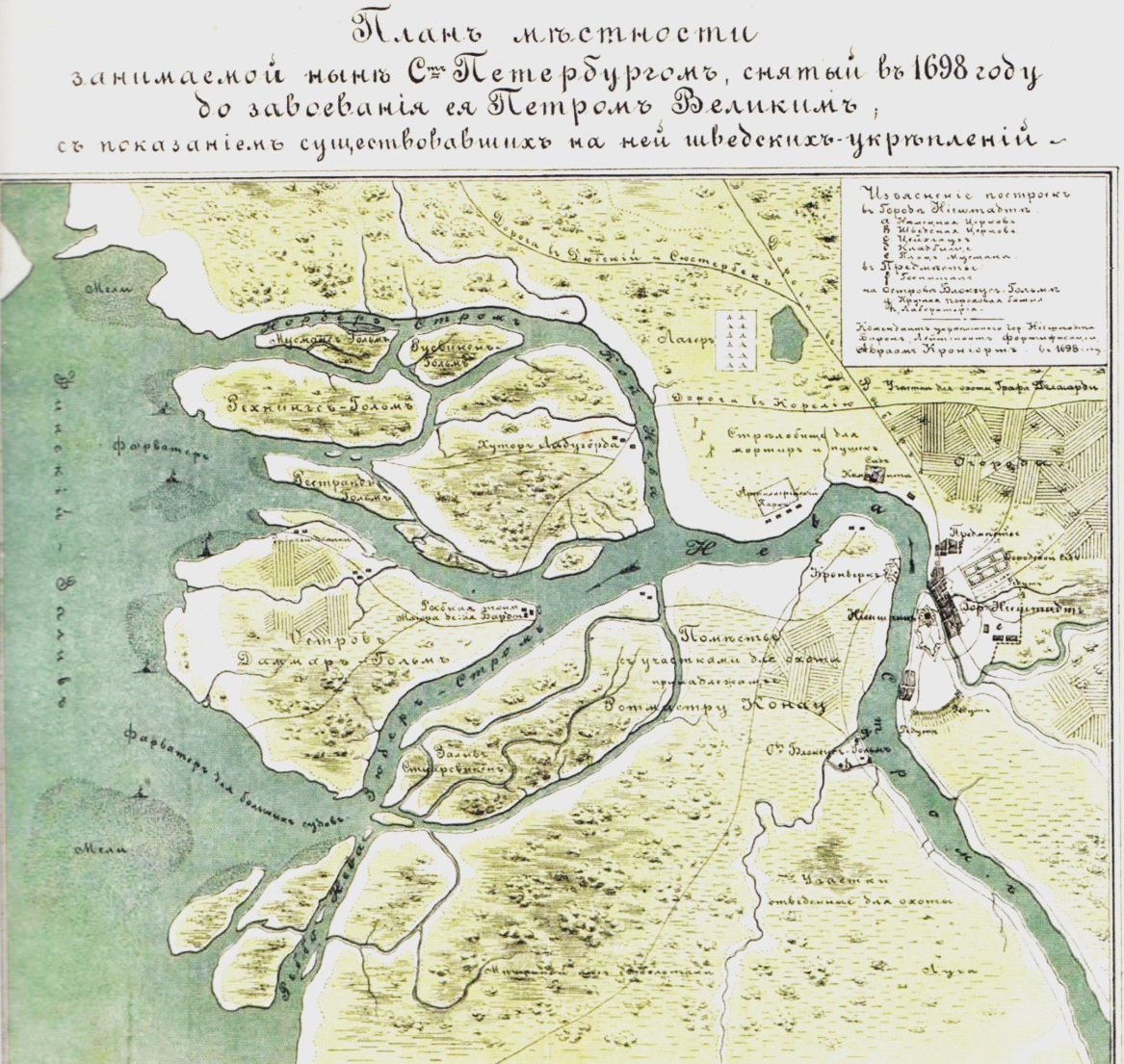 Русский царь Петр Первый, начавший войну с могущественной Швецией, фактически выполнял завещание своих предков закрепиться в Ингерманландии на берегах Финского залива. Попытки эти повторялись регулярно. Последняя была предпринята отцом Петра царем Алексеем Михайловичем в ходе русско-шведской войны 16561658 годов. И ещё были живы некоторые участники взятия шведской крепости Ниеншанц5 и победного морского боя между казацкой флотилией со шведским отрядом из трёх гребных кораблей близ острова Котлин в 1656 году6.