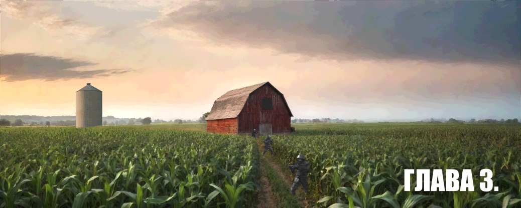 Как я уже сказала, сейчас мы на ферме. Помимо нас, здесь находится 24 человека. Эти люди не фермеры, как ты подумал, а правительственная охрана. Помимо них, в спокойное и дневное время здесь присутствует 14 актеров, как раз играющих роль фермеров для экскурсий. Сейчас эти 24 человека поставлены в боевую готовность впервые с начала существования фермы, а актеры отсутствуют в связи с беспорядками по всей Синтопии.