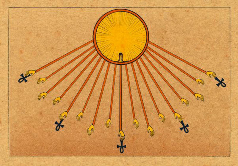 Бог Хепри в образе восходящего солнца. Иллюстрация фрагмента росписи из гробницы Рамсеса VI