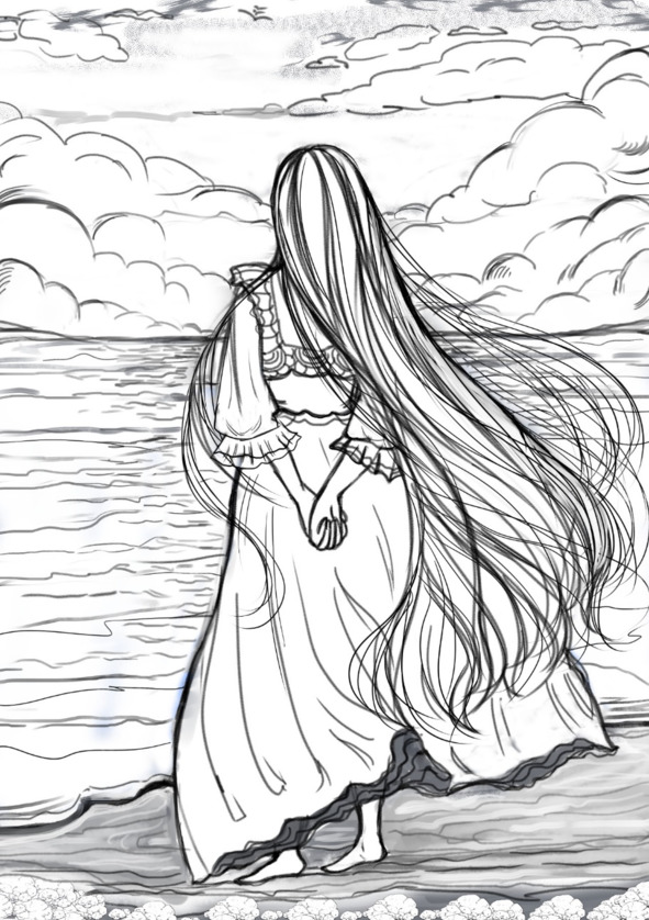 Под звуки волн, с первым касанием воды начинаю свой танец, и моя рука стремится к небу. Мне хотелось бы стать птицей, но никакие клетки не удержат меня в этот миг. Я открываю свою душу этому месту и могу быть собой. Мой танец на берегу этого моря, где нет больше никого. Это место, казалось, стало мне домом. Лишь на этом берегу принцессе разрешено плакать и смеяться. Забери все мои чувства, и пусть они сольются с такими же. Наши сердца поймут друг друга в бесконечном круговороте и станут одним единым целым. Одним большим чувством в море. Пусть все унесется далеко этими волнами к неизведанным землям. Когда настанет время дождя, я пойму ваши чувства вновь, и мы вернемся к началу всего. Мы все испытаем их заново. Моя скорбь, радость и грусть это все наше общее теперь.