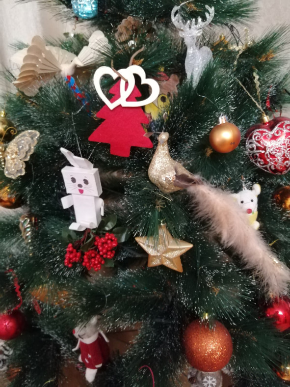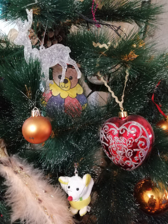 Все время появлялись новые игрушки: Деды Морозы и снеговики, санки и сердечки, куклы и маленькие плюшевые зверята. Иногда хозяйка вешала дождик, но чаще просто украшала бусами.