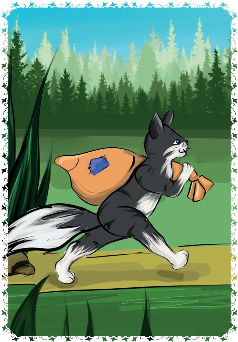 Выбила лисичка оконце, съела борщок и схватила петушка. Несёт его, а он кличет котика, поёт: