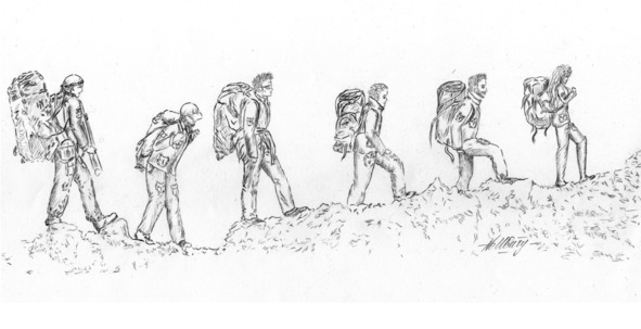 Мало я вас тренировал в полёте. Мы шли несколько часов, и вы раскисли. Посмотрите на проводника вот настоящий солдат!