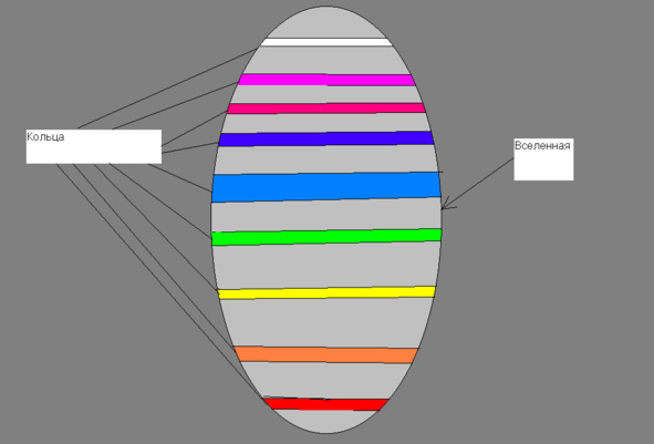 Итак, вы видите перед собой общую схему строения вселенной. Она по форме напоминает яйцо. Помните, что яйцо начало всего в материальном мире. Древние греки говорили: «Всё начинается с яйца».
