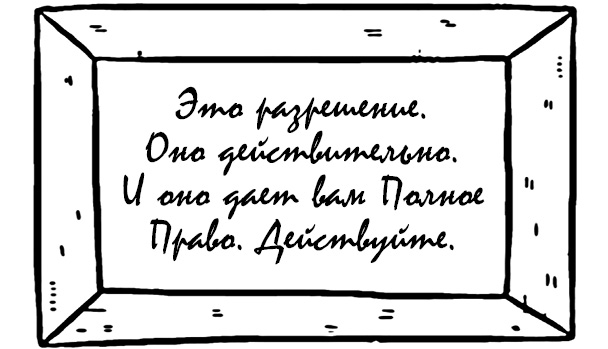 Повесьте этот документ на стену. И каждый раз, когда кто-то (или вы сами) захочет нажать на вашу красную кнопку, показывайте пальцем на этот документ и говорите: «Вот! Видите? Бумага с печатью! Я имею право здесь находиться и имею право делать то, что я делаю».