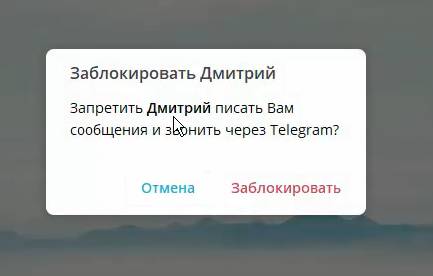 2. Заблокировать, тогда этот контакт больше не сможет писать сообщения и звонить через Телеграм он будет добавлен в черный список