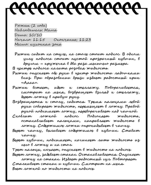 Рассмотрим ситуацию, описанную в начале этой главы, с позиции наблюдателя. Берем ручку, листочек, располагаемся на месте, полностью открывающим визуальный доступ к ребенку.