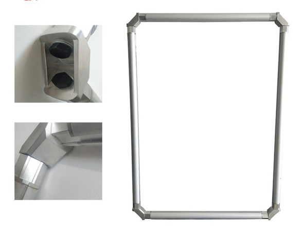 Принцип работы рамы довольно простой. Каждая из сторон имеет возможность вращаться и при этом фиксироваться торцевыми болтами в заданном положении. Каждая сторона имеет углублённый жёлоб с вставленной в пазы желоба пластиковой полоской.