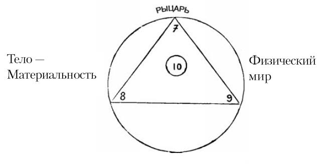 Последовательность картинок представлена в трех мирах числами; то же самое имеет место в последовательности мастей: Скиперты, Чаши, Мечи, Пентакли представлены в картинках.