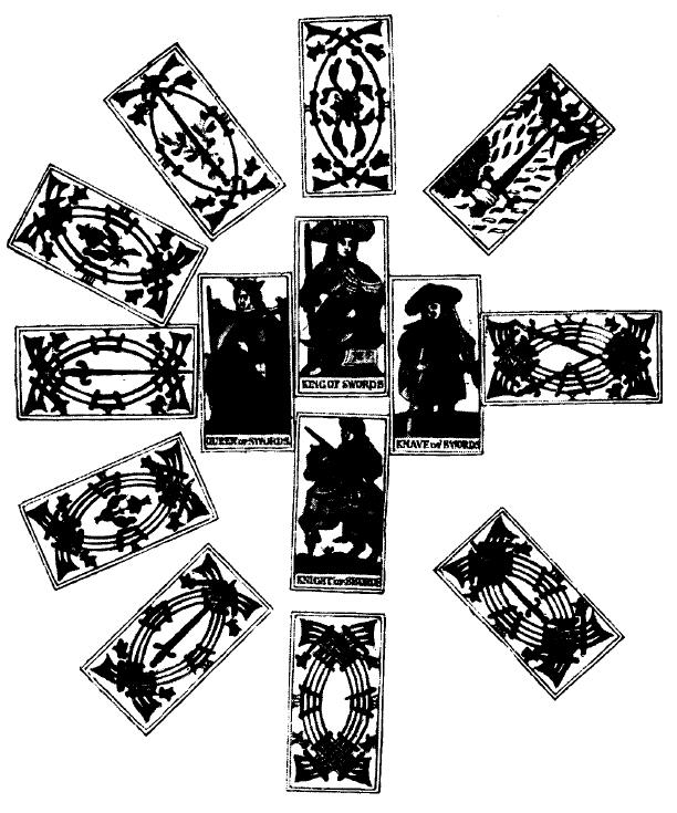 Четыре придворные карты представляют Yod he Vau he; четыре серии номерных уврт представляет нам Священное имя в мой же манере.