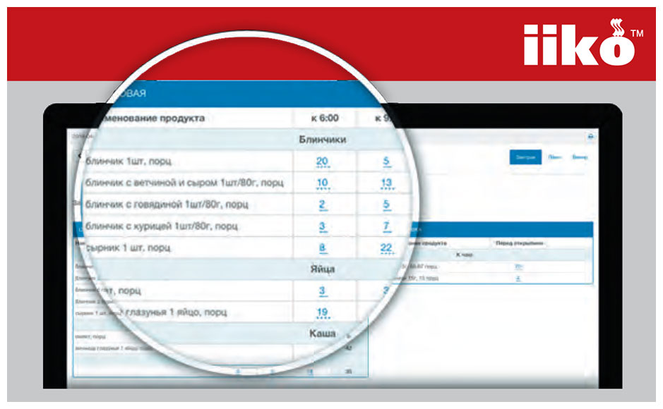 iiko прогнозирует продажи на основе статистики прошлых периодов. На основе этого прогноза iiko рассчитывает плановую загрузку кухни по сезонам, дням и пиковым часам, а также потребность в продуктах для приготовления блюд. Кроме того, система понимает, какие заготовки следует сделать заранее. На основе этих расчетов автоматически формируется ежедневный почасовой план работы кухни и создаются заказы на поставку товаров.