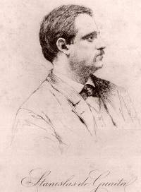 Небо, третий рыцарь недосягаемой Дульсинеи, заслуживает того, чтобы посвятить ему целую главу. Он был самым интересным из французских оккультистов нашего поколения; умер он несколько лет тому назад. Его очень ценили в избранных кругах, но известности среди широкой публики он не имел никогда. Между тем он носил звучное, подходящее к обстоятельствам имя: Станислав де Гуайта, «Guaita» значит нечто среднее между поэтом и волшебником. Он дебютировал в литературе стихами их нельзя назвать превосходными, но они и не слишком посредственны. Если им и не восхищались, то во всяком случае ценили довольно высоко. Rosa Mystica, la Muse Noire таковы заглавия его поэм; они достаточно указывают, что уже тогда поэт бессознательно стремился к магии. Наконец ему попались книги Элифаса Леви; говорят, их указал ему Катулл Мендес. Они были для Гуайта долгожданным откровением. Душа экс-аббата Констана эта неукротимая, эротическая, бурная и бессильная, иногда просветленная и пророческая душа завладела колеблющейся личностью Гуайта, несколько разочарованного в то время увяданием своих литературных лавров. Духовное наследство Элифаса шло в его руки; ему представилась возможность воздвигнуть в полумраке храм зла, где искрились бы сомнительные драгоценности дьявольских реликвий. С тех пор он оставил общество поэтов и затворился в маленькой квартире с красными обоями на Avenue Trudaine; там жил он, завернувшись в мантию кардинала, окруженный своими драгоценными книгами; из химической лаборатории он шел со своими страшными колбами в рабочий кабинет; помогал себе в работе кофеином, морфием, гашишем и что не так уже вредно превосходным вином. Таким образом он создал себе, без сомнения, чудную жизнь, полную грез и высоких подъемов; но рано погиб, с ввалившимися глазами, изношенным мозгом и телом, обратившимся в болезненный лоскут.