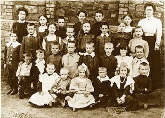 Две учительницы школы в Юзовке (1911 год), со своими учениками.