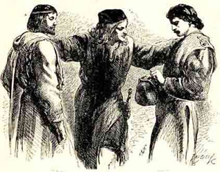 Как раз в то время, когда Гамлет боролся с сомнениями и не знал, как поступить, ко двору явилось несколько странствующих актеров. Принц восхищался раньше их игрой; особенно нравился ему талант одного актера, который прекрасно читал трагедию о смерти старого Приама, властителя Трои, о скорби Гекубы, супруги Приама. Гамлет радостно приветствовал своих старых друзей-актеров. Вспомнив, какое удовольствие доставляло ему чтение одного из них, принц попросил актера доставить ему еще раз это удовольствие. Актер прочел отрывки из трагедии с большим искусством, он вложил много чувства в сцену убийства слабого властителя, с громадным подъемом декламировал о разрушении города Трои, о гибели народа, о безумном горе царственной Гекубы, бродившей с тряпицей на челе вместо короны Артист не только растрогал присутствовавших, которым после его чтения казалось, будто все это происходило перед ними на самом деле, но даже сам растрогался до слез и закончил дрожащим от волнения голосом. На Гамлета вся эта сцена произвела совсем особенное впечатление.