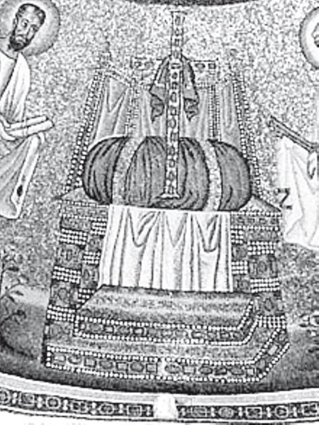 Этимасия также представляет собой двойную онтологию пустой не пустой трон, и в полном соответствии с метафизикой Царя Мира соотносится с удалением и возвращением истинного и легитимного Правителя.